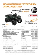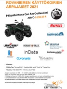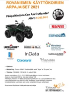 RKK on toimeenpannut arpajaiset, jonka pääpalkintona on mönkijä. Arpojen myyntiaika on 15.6. – 31.12.2021 ja arvan hinta 10 €. Arpoja myymällä voi hankkia huojennuksia harrastemaksuihin. Uutista klikkaamalla lisätietoja. Rovaniemen Käyttökoirat ry on toimeenpannut arpajaiset, jonka palkintojen yhteisarvo on 14 669,45 €. Pääpalkintona on mönkijä. Arpojen myyntiaika on 15.6. – 31.12.2021. Arpajaisten tuotto käytetään RKK:n harrastevälineiden uusimiseen sekä harrastustilojen kulujen kattamiseen. Arvan hinta on 10 € ja maksutapavaihtoehtoina ovat käteinen, MobilePay ja tilisiirto. Palkintojen arvonta suoritetaan heti vuoden vaihtuessa. Arpoja voi ostaa RKK:n tapahtumista, treeneistä, aktiivisilta myyjiltämme tai ottamalla yhteyttä hallituksen jäseneen. Tarjoamme kaikille mahdollisuuden hankkia huojennuksia harrastemaksuihin tukemalla meitä arpojen myyntityössä. Mitä enemmän arpoja myyt, sitä suurempi hyöty: • 50 arpaa, etu 40 € • 100 arpaa, etu 80 € • 125 arpaa, etu 120 € • 150 arpaa, etu 160 € • 200 arpaa, etu 240 € • 250 arpaa, etu 320 € • 300 arpaa, etu 400 € • 350 arpaa, etu 480 € Arvat ja myyntiohjeet saa hallitukselta (erityisesti Kimmolta). Ole rohkeasti yhteydessä! |